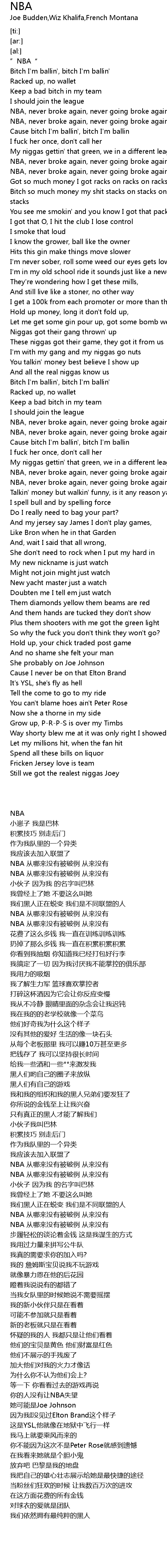 | [00:25.72] | NBA, never broke again, never going broke again |
