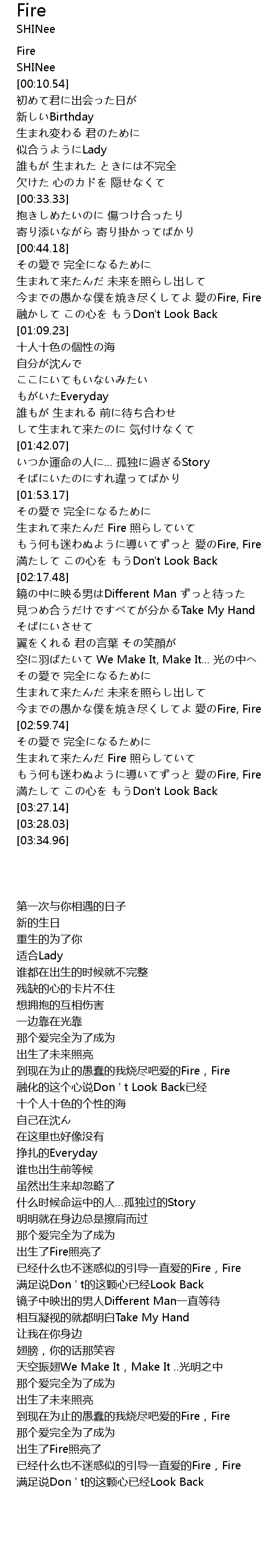 | [03:13.49] | he mi dao ai Fire, Fire |