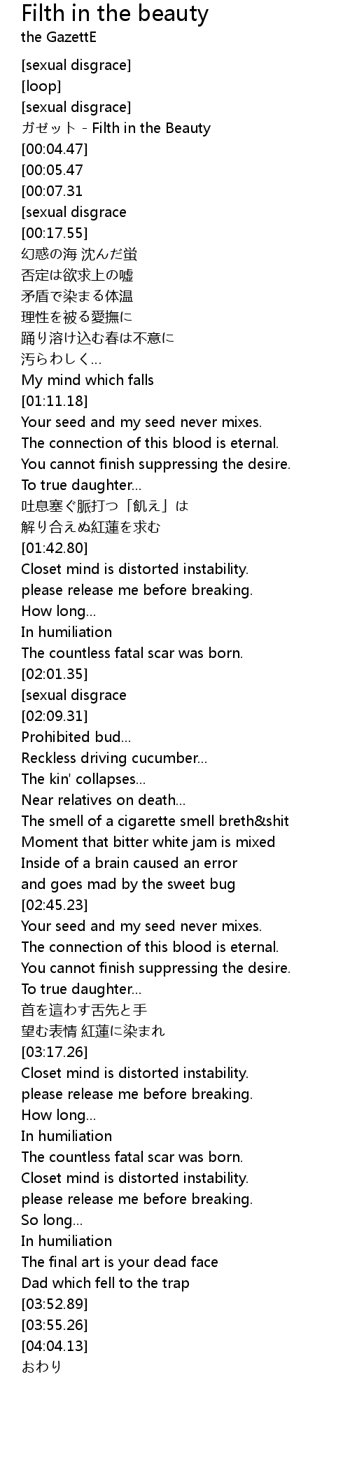 | [00:00.00] | ガゼット - Filth in the Beauty |