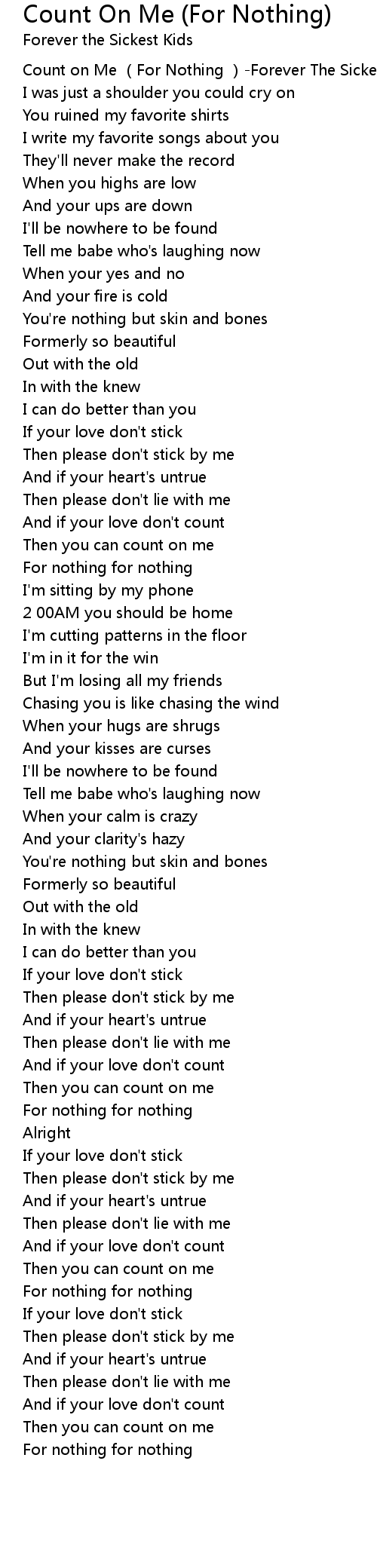 | [00:00.910] | Count on Me (For Nothing )-Forever The Sickest Kids |