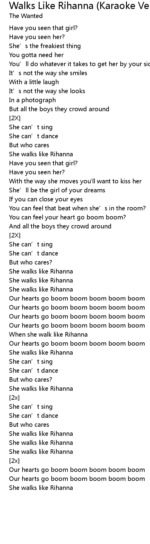 | Song | Walks Like Rihanna (Karaoke Version) |