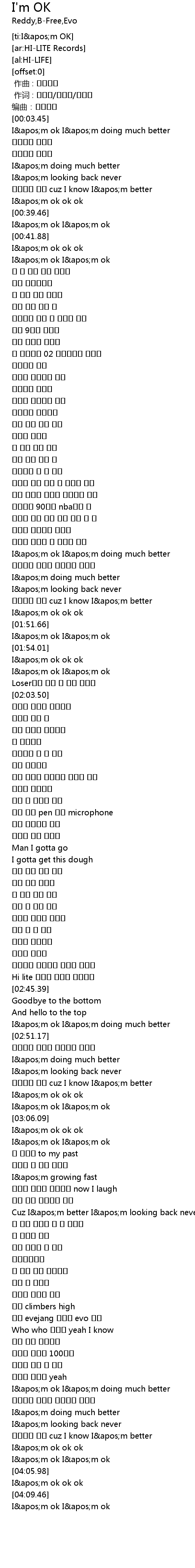 | [04:00.61] | I apos m ok ok ok |