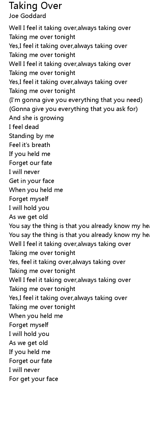 Well I feel it taking over,always taking over |