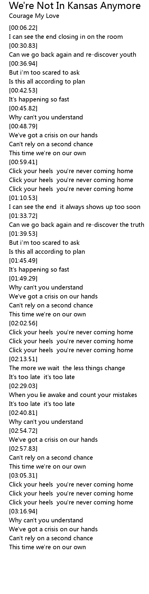 Click your heels you're never coming home |