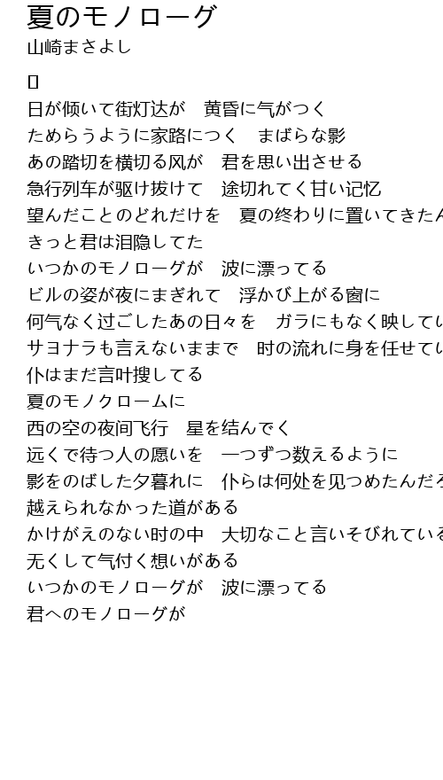 | 望んだことのどれだけを 夏の终わりに置いてきたんだろう | |