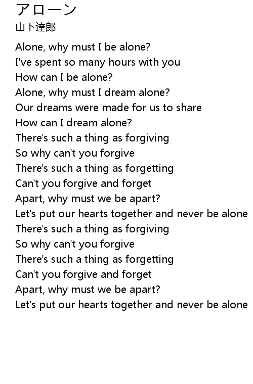 Alone, why must I be alone? |
