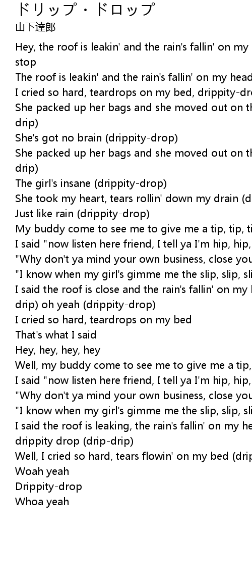 I said the roof is close and the rain's fallin' on my head, (drip drip) oh yeah (drippity-drop) |