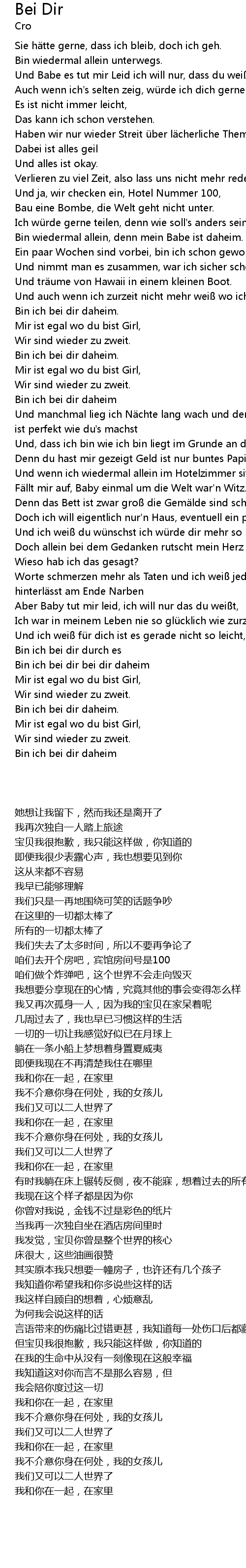 | [00:35.98] | Bin wiedermal allein, denn mein Babe ist daheim. |