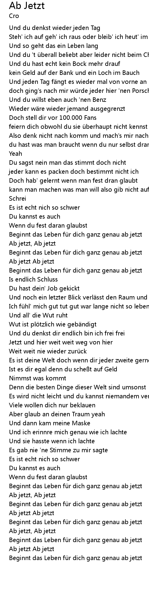 | [01:12.33] | Beginnt das Leben für dich ganz genau ab jetzt |