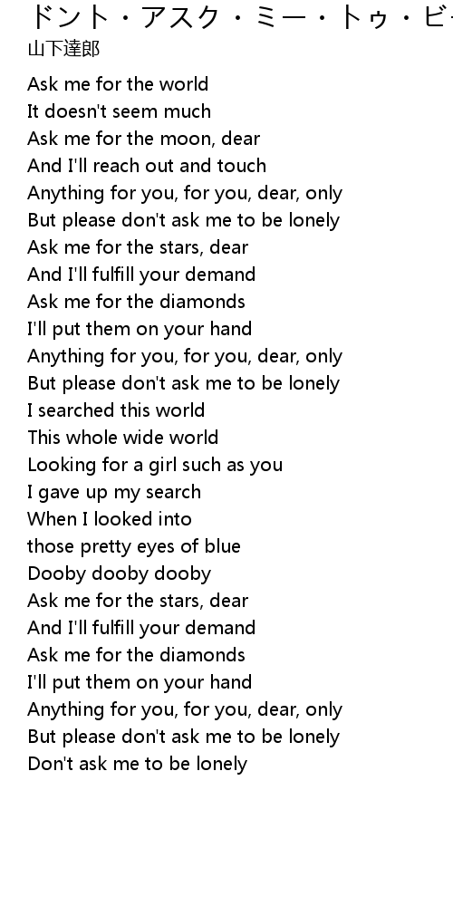 ドント・アスク・ミー・トゥ・ビー・ロンリー  Lyrics