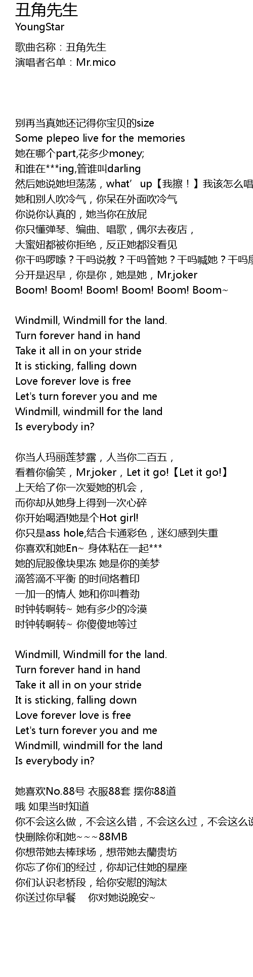 | fēn kāi shì chí zǎo, nǐ shì nǐ, tā shì tā, Mr. joker | |