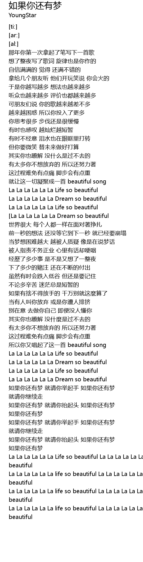 | [03:13.79] | 如果你还有梦 就请你抬起头 如果你还有梦 如果你还有梦 |