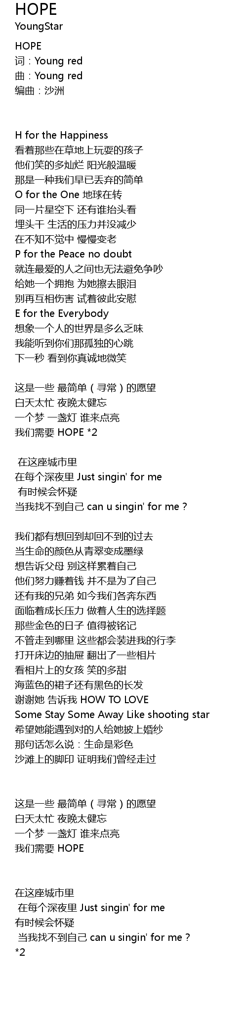 | 词:Young red | |