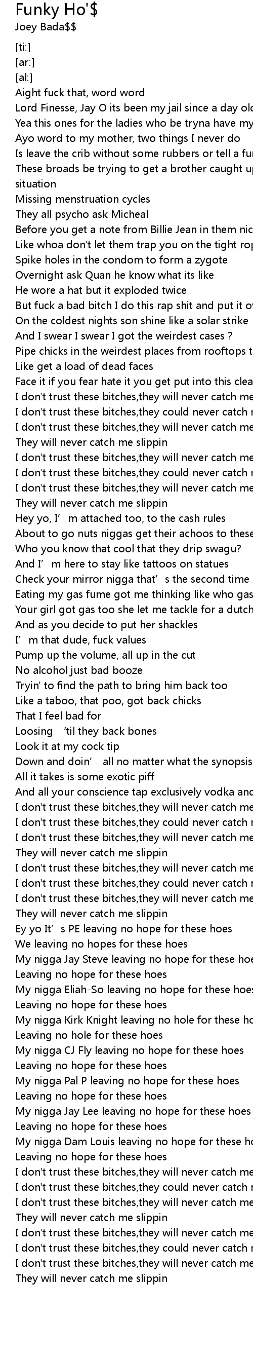 | [02:54.12] | Leaving no hope for these hoes |