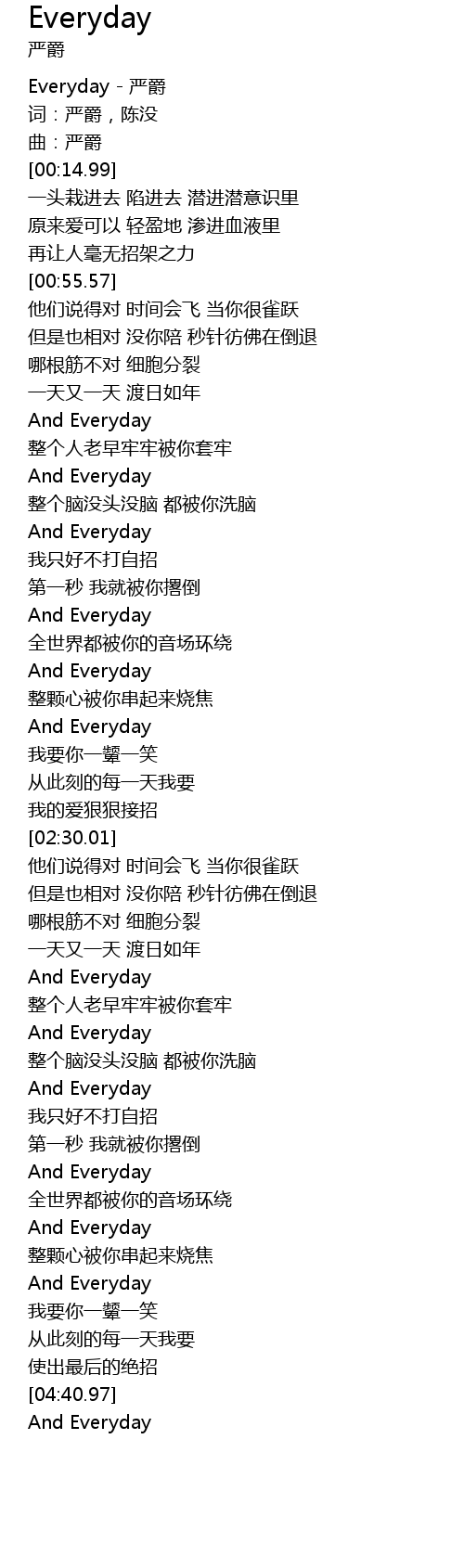 | [00:02.68] | Everyday - 严爵 |