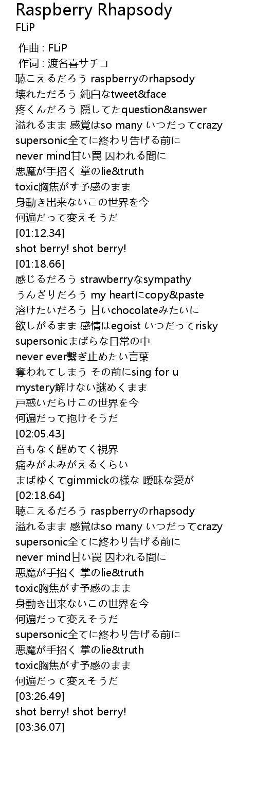 | [02:30.78] | 聴こえるだろう raspberryのrhapsody |