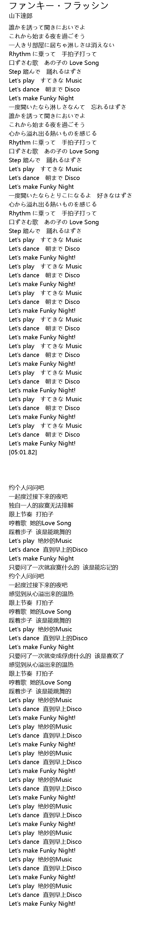 | [01:22.49] | Let's make Funky Night |