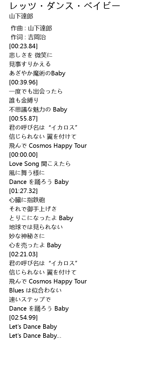 | [01:21.26] | Dance を踊ろう Baby |