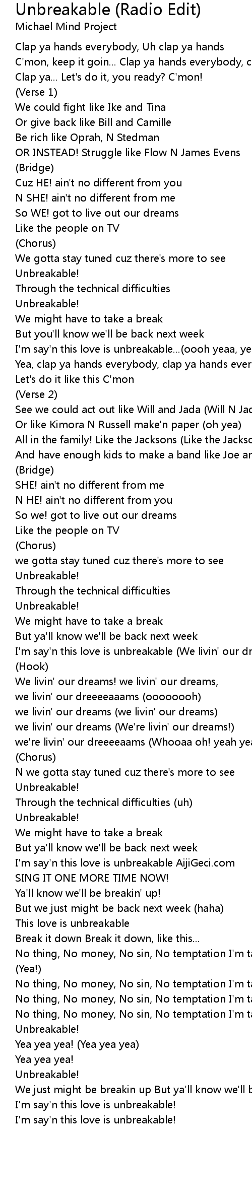 I'm say'n this love is unbreakable...(oooh yeaa, yeaa) |