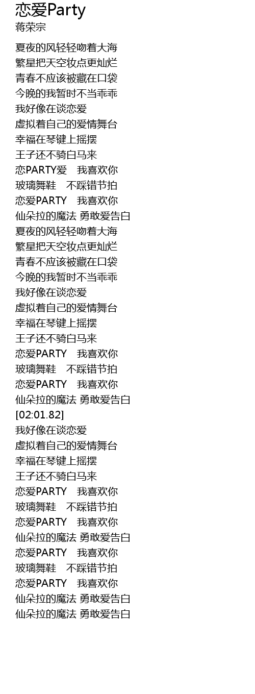 | [01:55.27] | 恋爱PARTY 我喜欢你 |