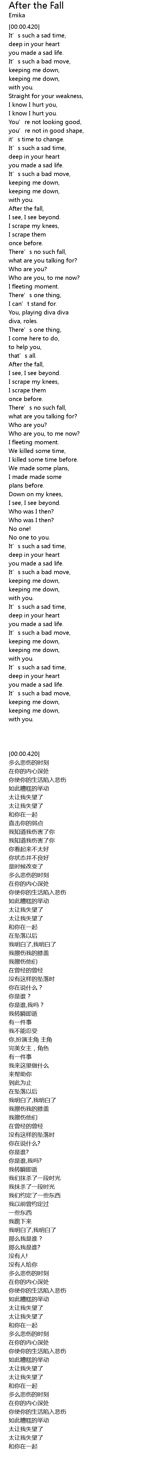 | [02:04.590] | After the fall, |