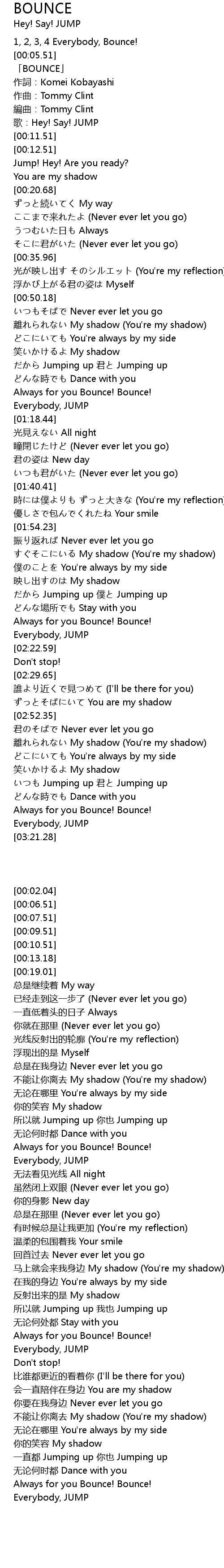 | [03:16.86] | Always for you Bounce! Bounce! |
