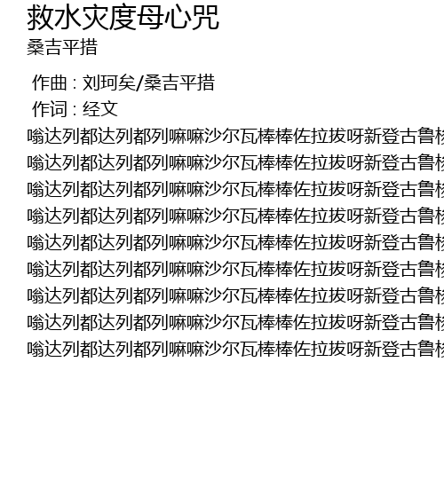 | [01:19.20] | 嗡达列都达列都列嘛嘛沙尔瓦棒棒佐拉拔呀新登古鲁梭哈 |