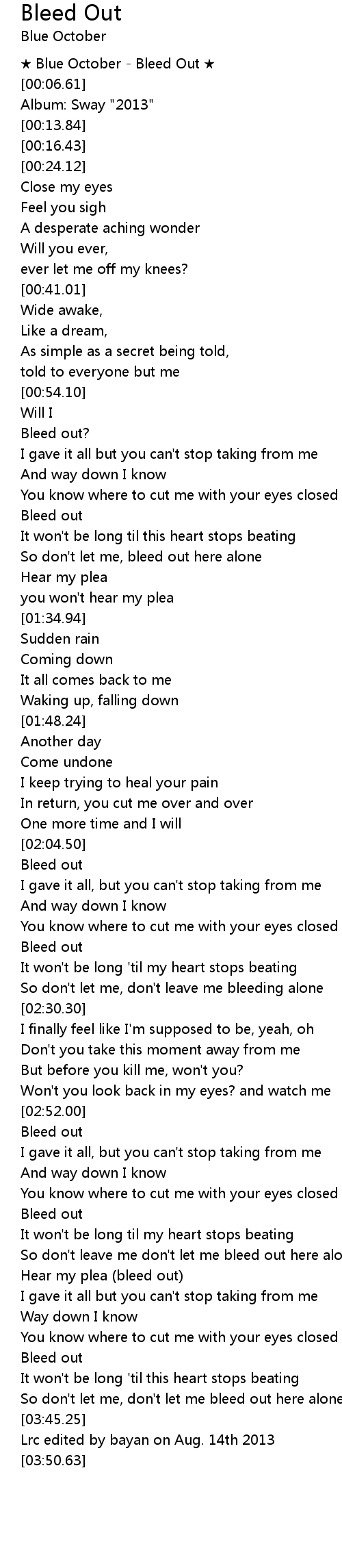 | [00:02.93] | Blue October Bleed Out |