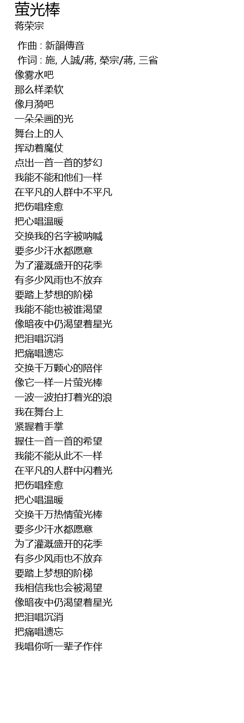 | [00:01.00] | 作词 : 施, 人誠/蔣, 榮宗/蔣, 三省 |