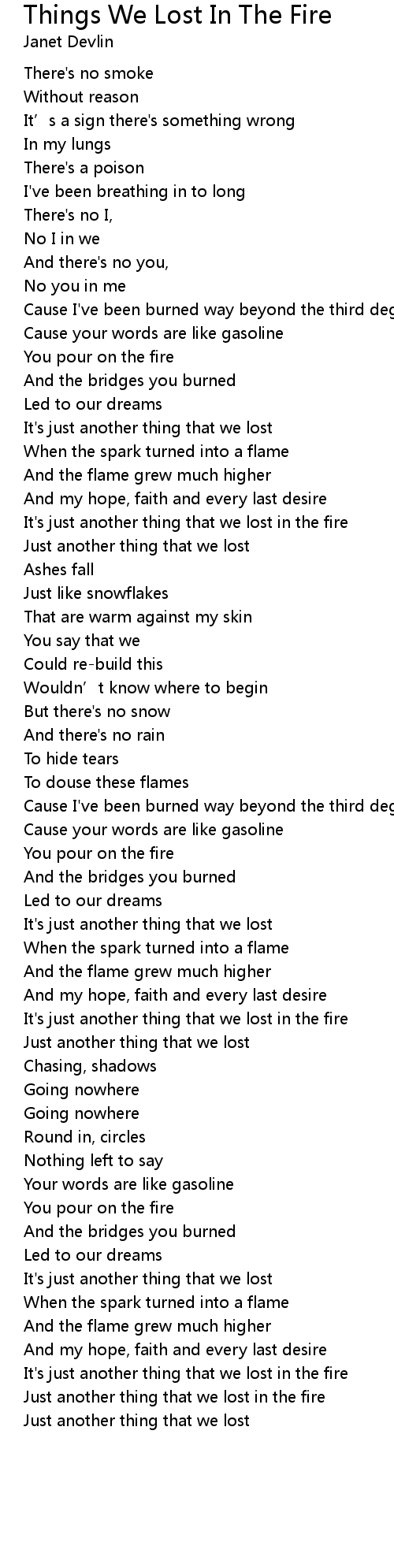 | Just another thing that we lost in the fire | |