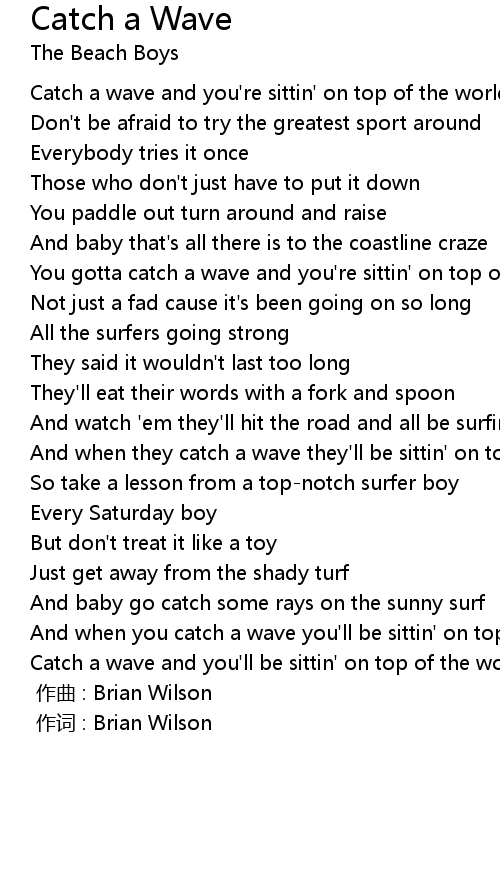 | Catch a wave and you're sittin' on top of the world | |