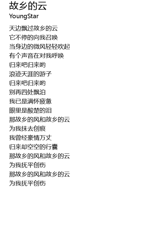 | [01:38.200] | 那故乡的风和故乡的云 |