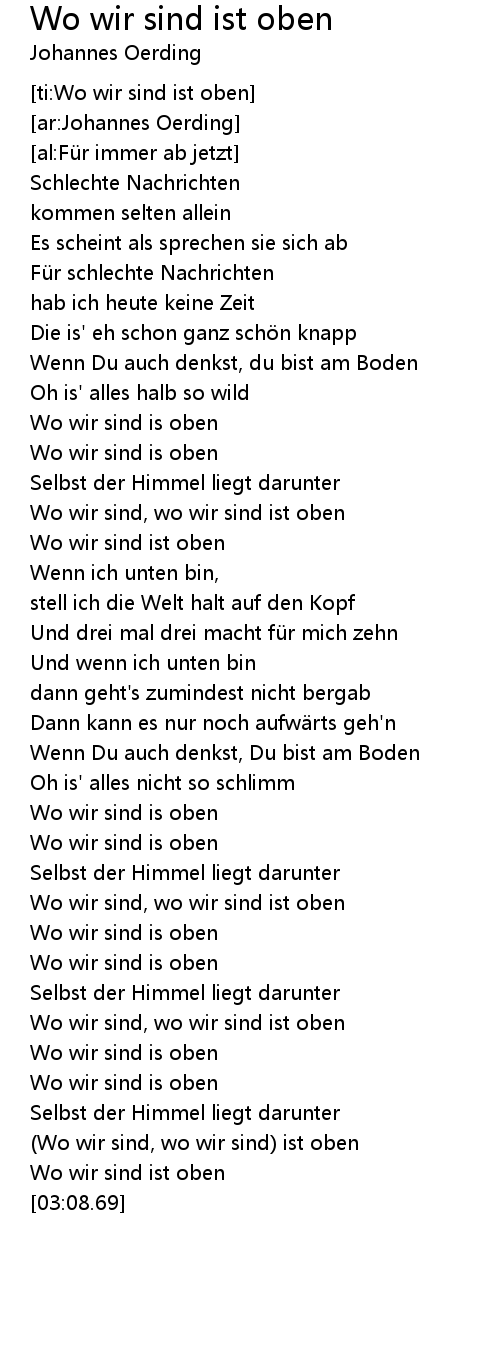 | [02:45.70] | Wo wir sind is oben |