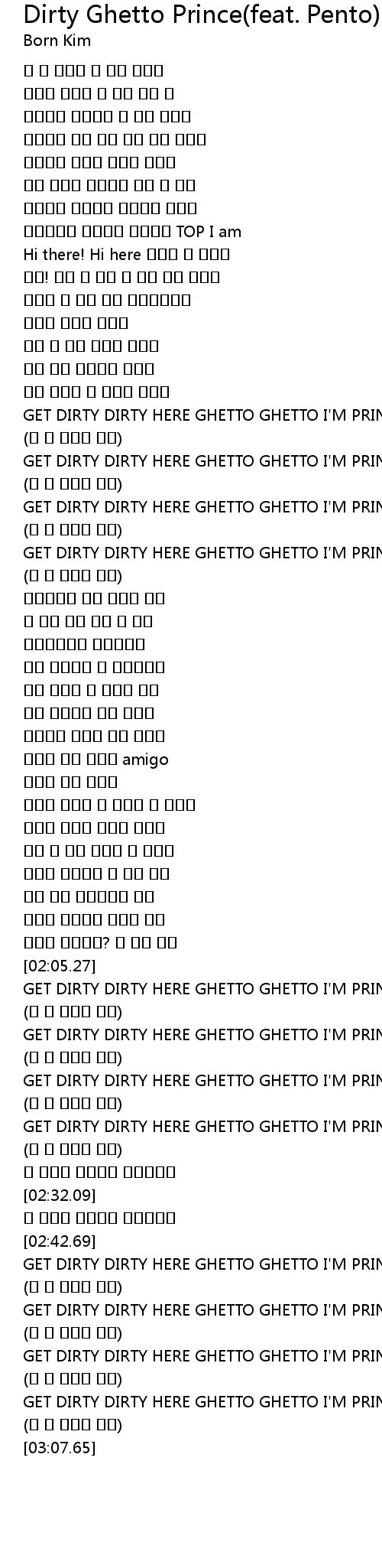 | [02:52.33] | GET DIRTY DIRTY HERE GHETTO GHETTO I' M PRINCE PRINCE |