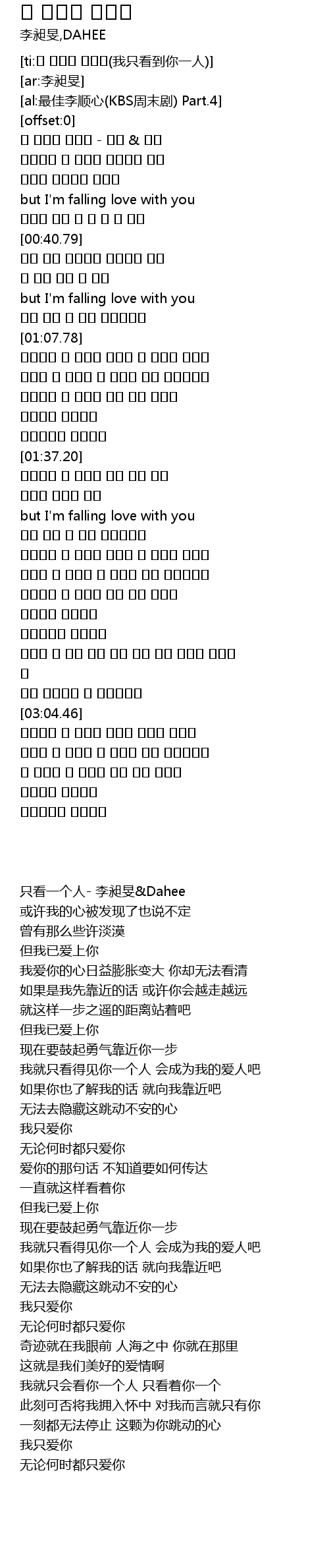 | [ti:한 사람만 보여요(我只看到你一人)] | |