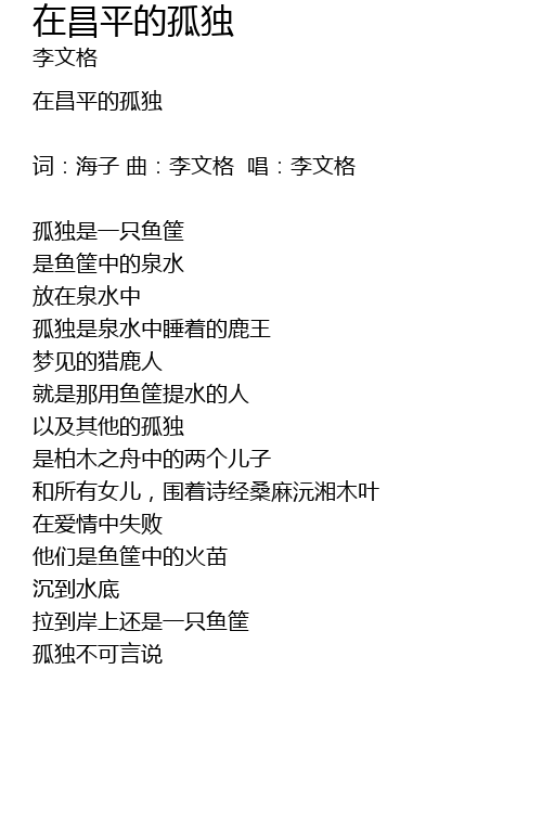 | 词:海子 曲:李文格 唱:李文格 | |