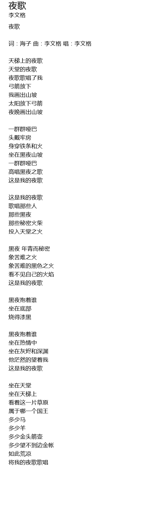 | 词:海子 曲:李文格 唱:李文格 | |