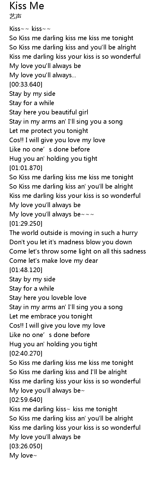 | [00:19.150] | Kiss me darling kiss your kiss is so wonderful |
