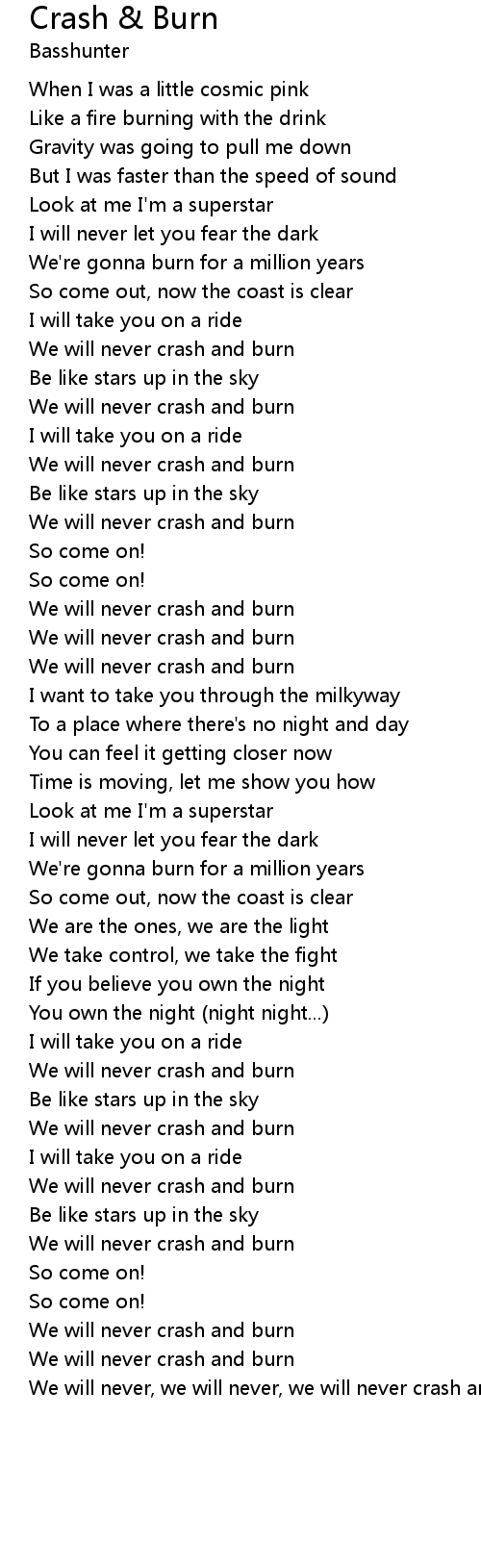 We will never, we will never, we will never crash and burn |