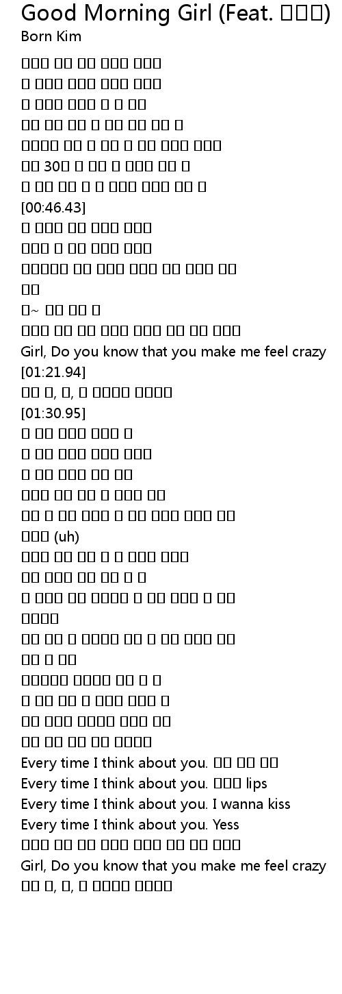 | [01:16.37] | Girl, Do you know that you make me feel crazy |