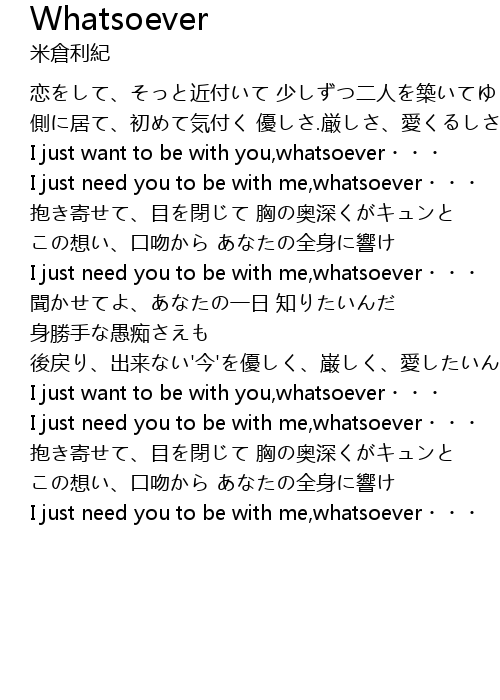 | I just need you to be with me, whatsoever |