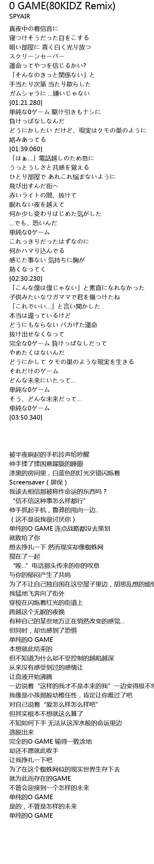| [01:21.470] | 単純な0ゲーム 駆け引きもナシに |