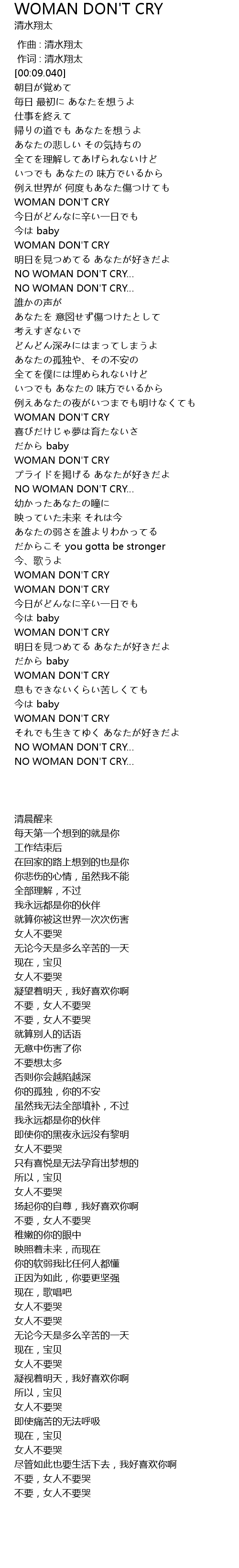 | [01:35.340] | NO WOMAN DON' T CRY |
