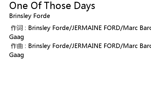 | [00:00.000] | zuo ci : Brinsley Forde JERMAINE FORD Marc Baronner Menno van der Gaag |