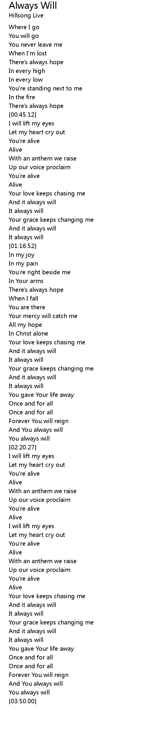 Always Will Lyrics