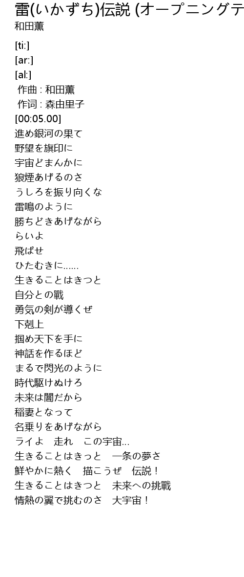 | Song | 雷(いかずち)伝説 (オープニングテーマ) |