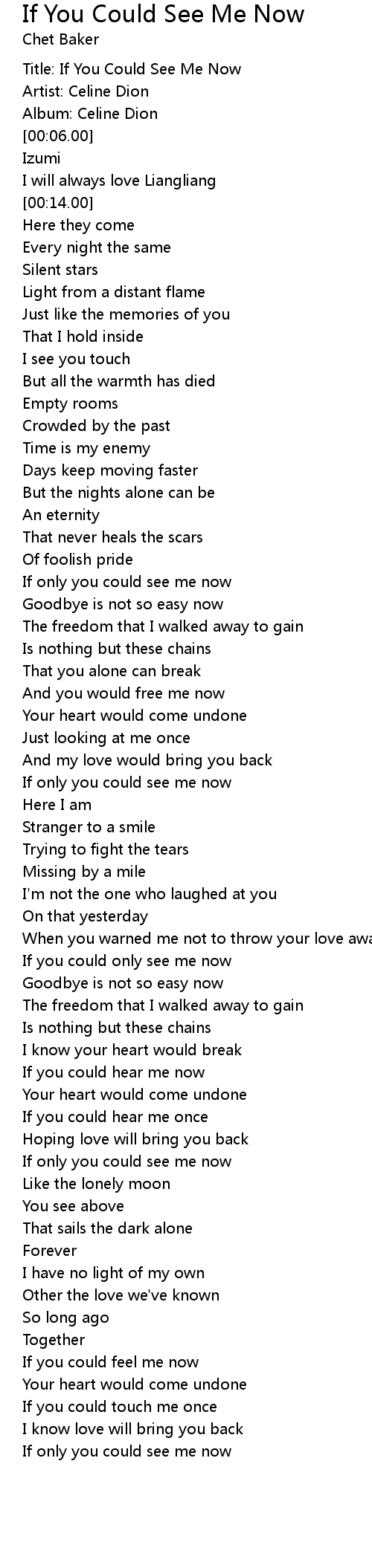 If you could only see me now |
