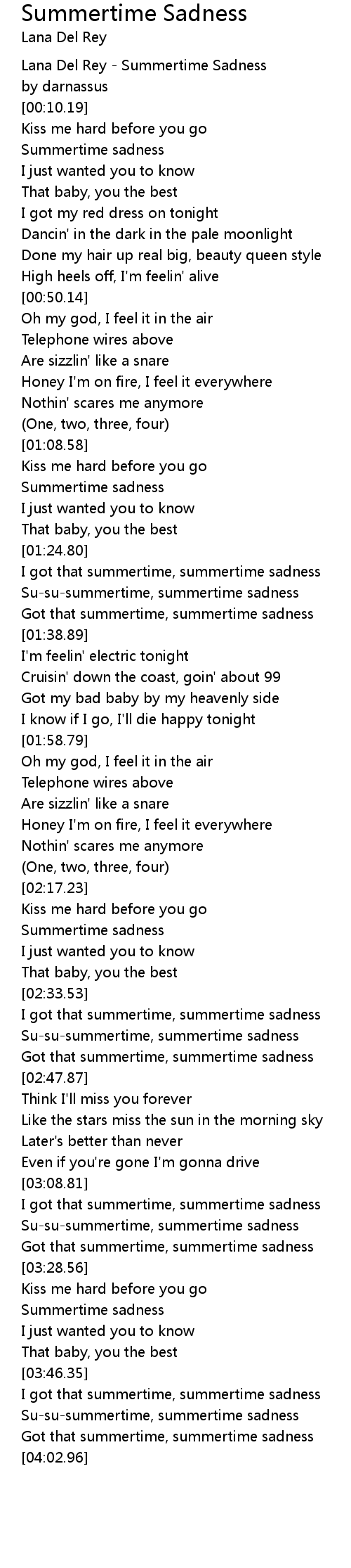 Su-su-summertime, summertime sadness |