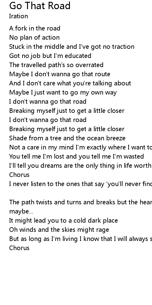 | I don't wanna go that road | |