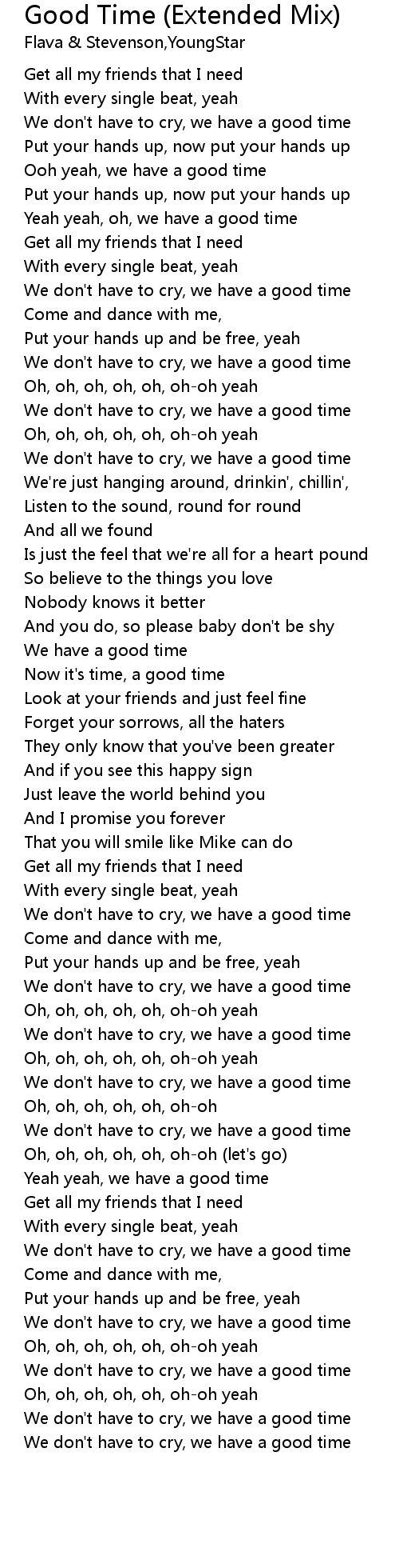 | [00:46.71] | Ooh yeah, we have a good time |